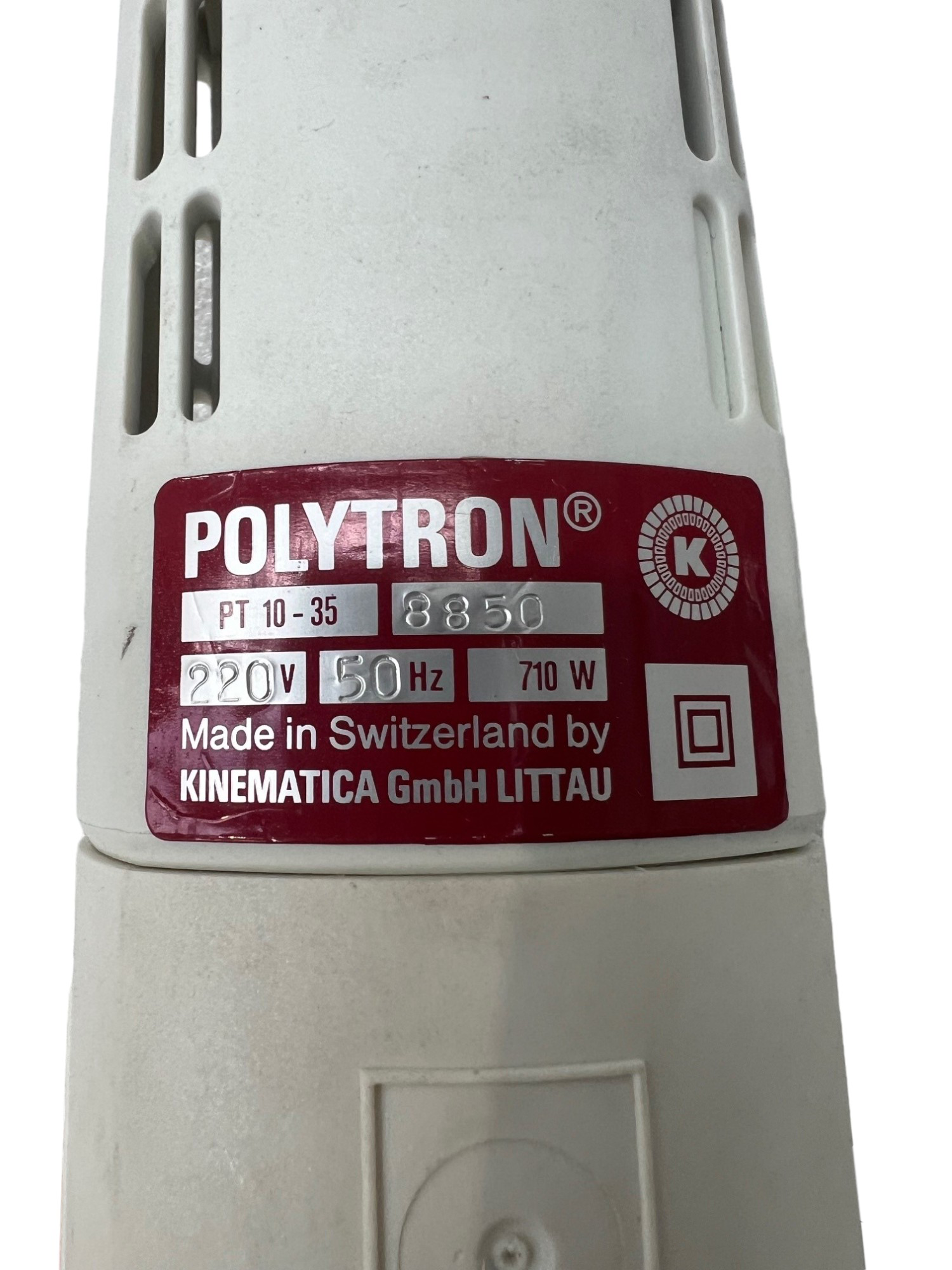 The Kinematica Polytron PT 10-35 homogenizer is used for direct mechanical action cuts, rips, and pulverizes samples for complete homogenization. Homogenizers are also useful for preparation of pharmaceuticals and emulsions. This durable homogenizer contains a high-speed motor for homogenizing all types of samples. Unit features a 710W motor capable of variable speed control up to 24,000rpm.